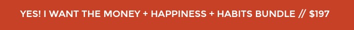 First things first! Enrollment for my beloved course Put Your Money Where Your Happy Is ends tonight at 11:59 pm CST! And we even bundled it with Make It Stick Habit School and 2 workbooks! That’s $425 of stuff for $197!